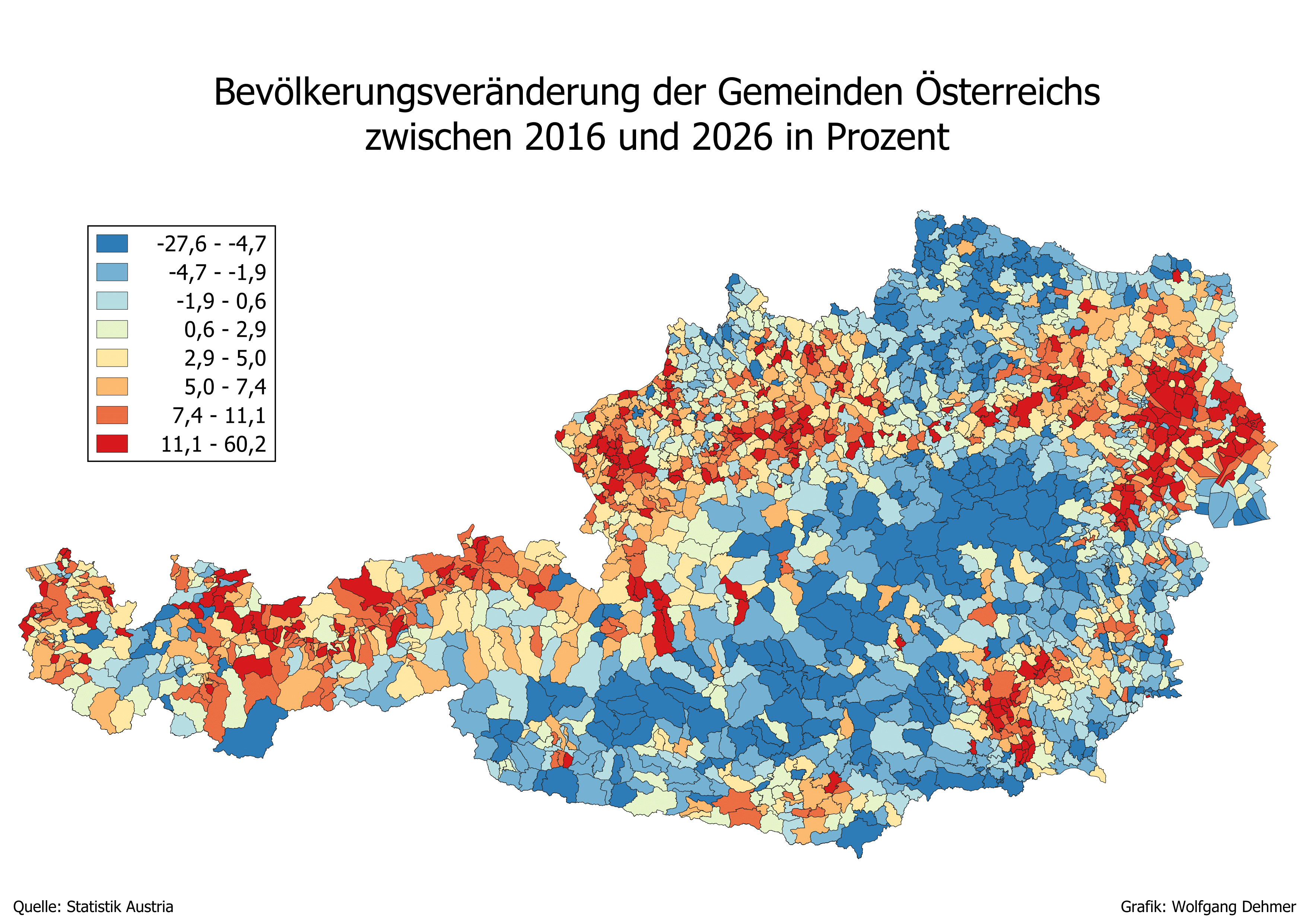 Bevölkerungsveränderung nach Gemeinden 2016-2026