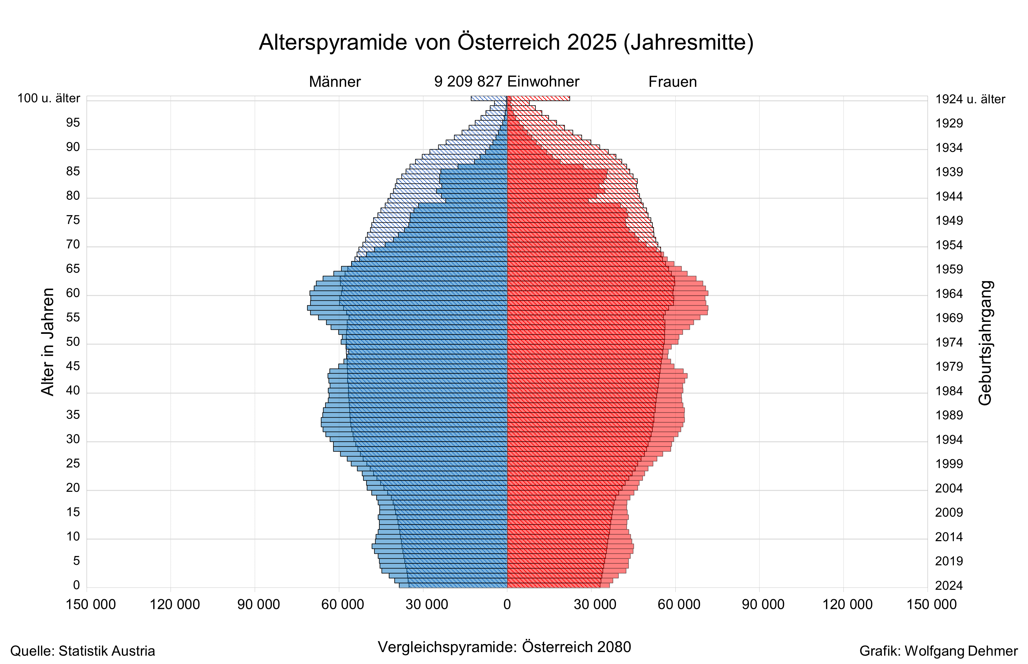 Im vorliegenden Fall handelt es sich um die Prognoserechnung der Statistik Austria (Hauptvariante 2025).