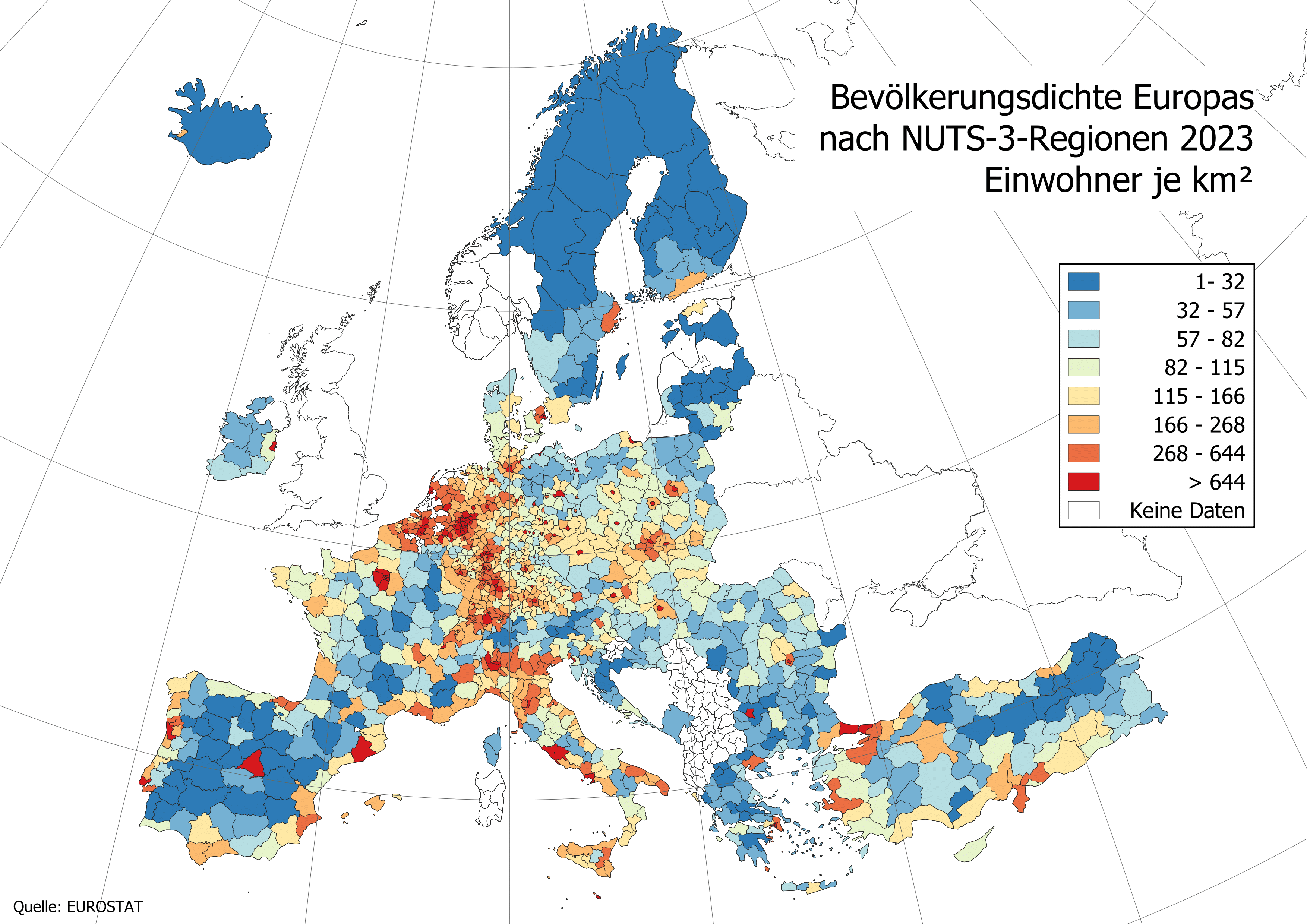 Bevölkerungsdichte nach NUTS-3-Regionen