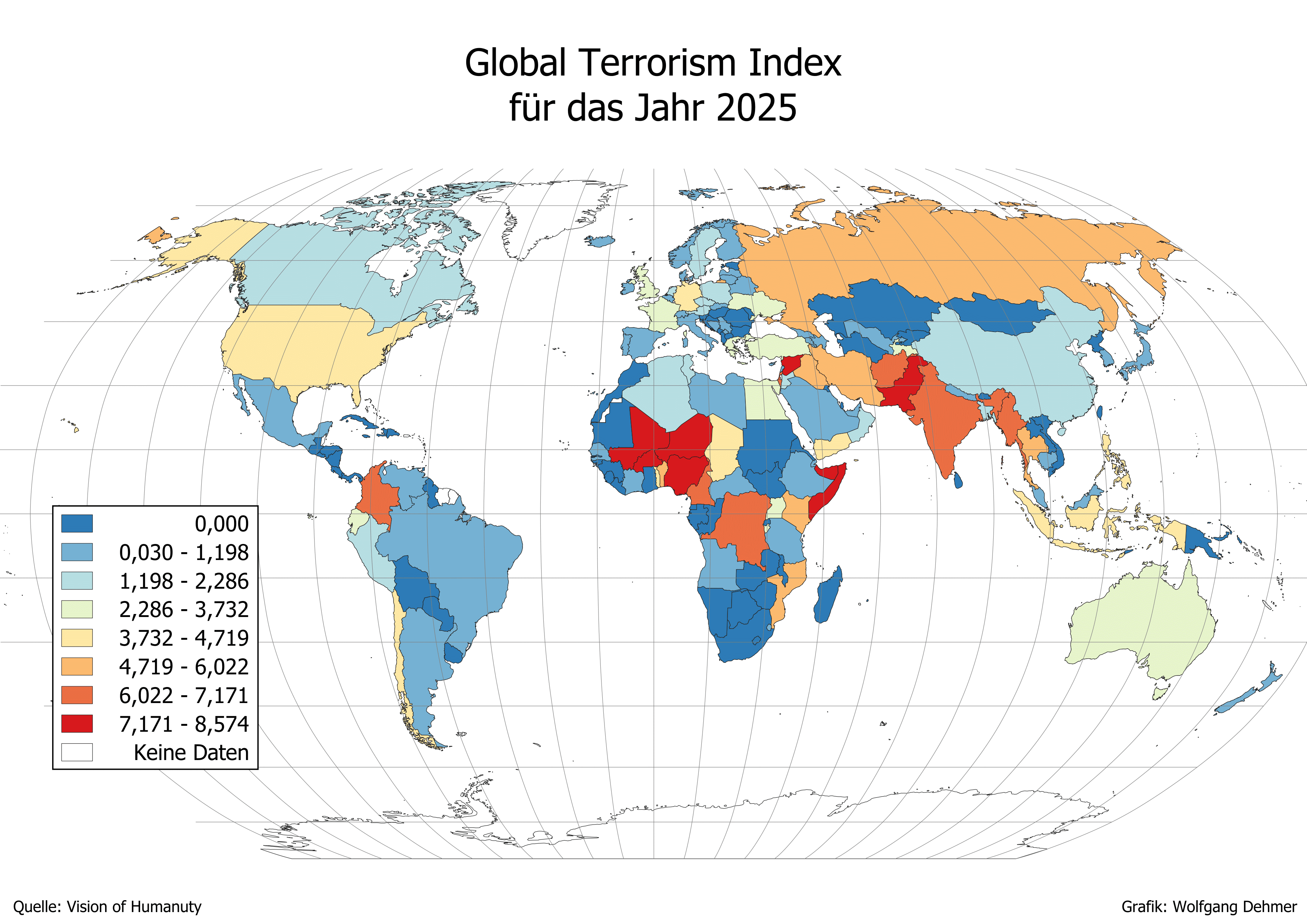 Der Globale Terrorismusindex (GTI) ist eine umfassende Studie, die die Auswirkungen des Terrorismus in 163 Ländern analysiert, die 99,7 Prozent der Weltbevölkerung abdecken.