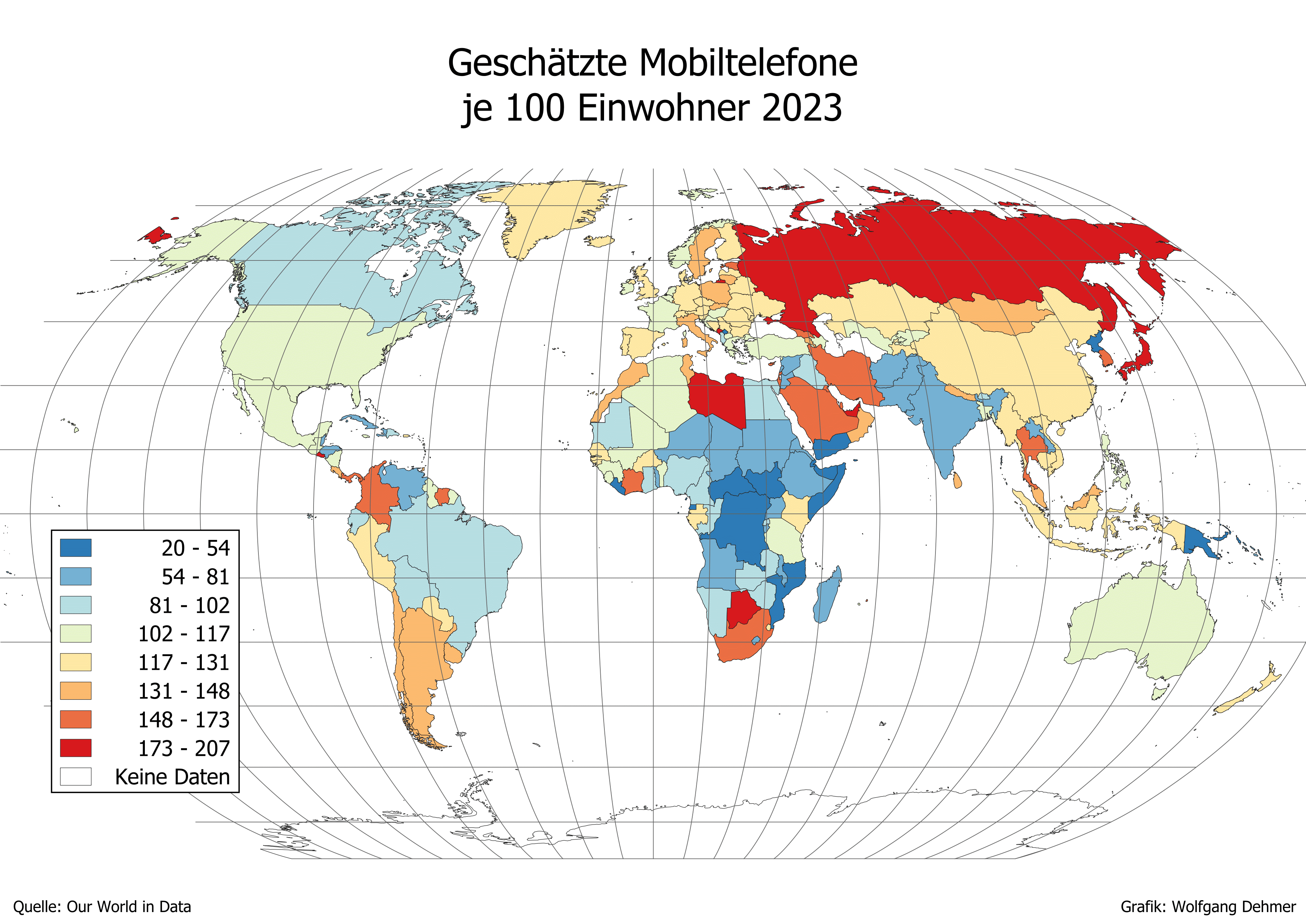 Mobiltelefone je 100 Einwohner 2023