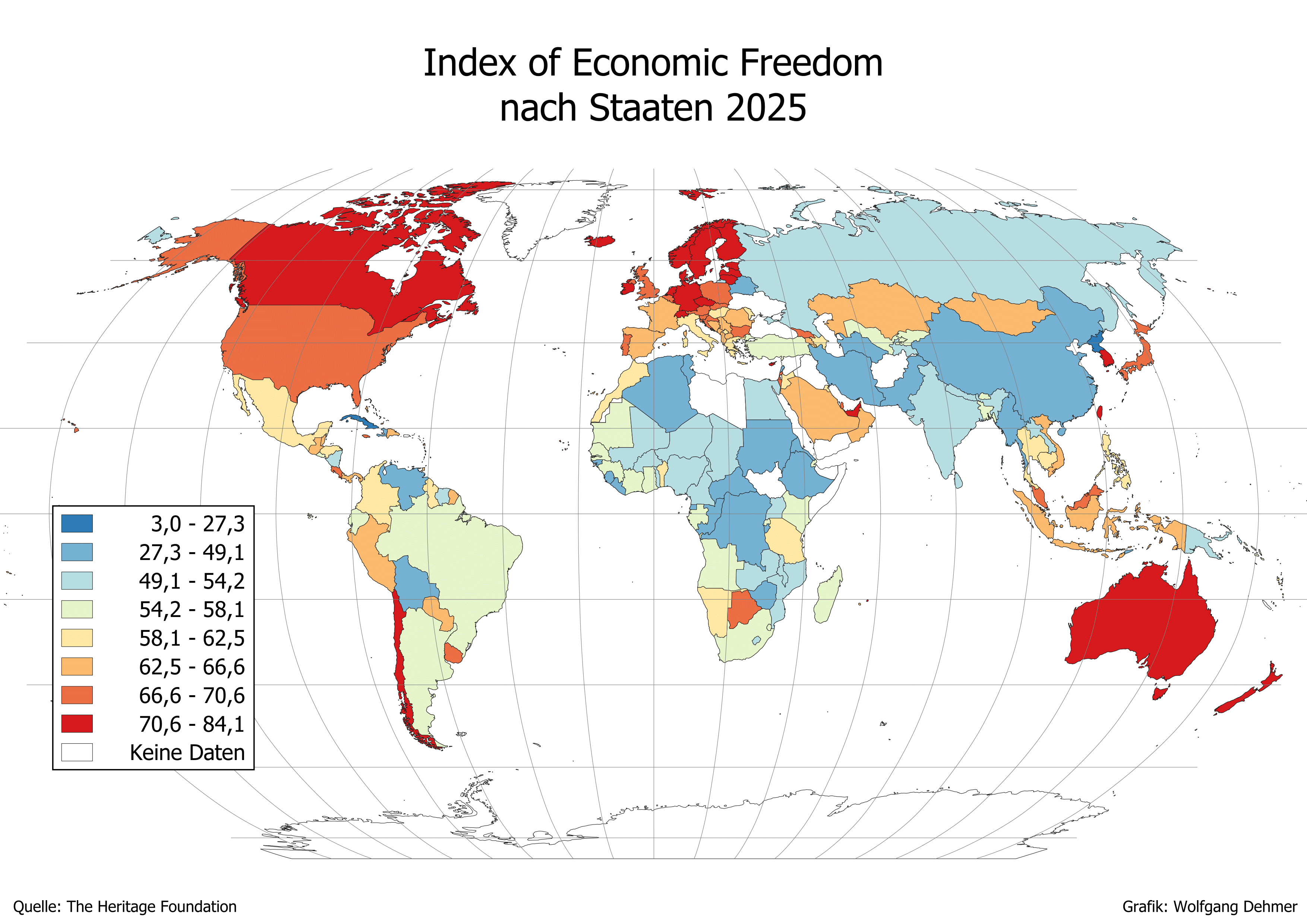 Der Index of Economic Freedom der Heritage Foundation umfasst zwölf quantitative und qualitative Faktoren, die in vier große Kategorien bzw. Säulen wirtschaftlicher Freiheit unterteilt sind: