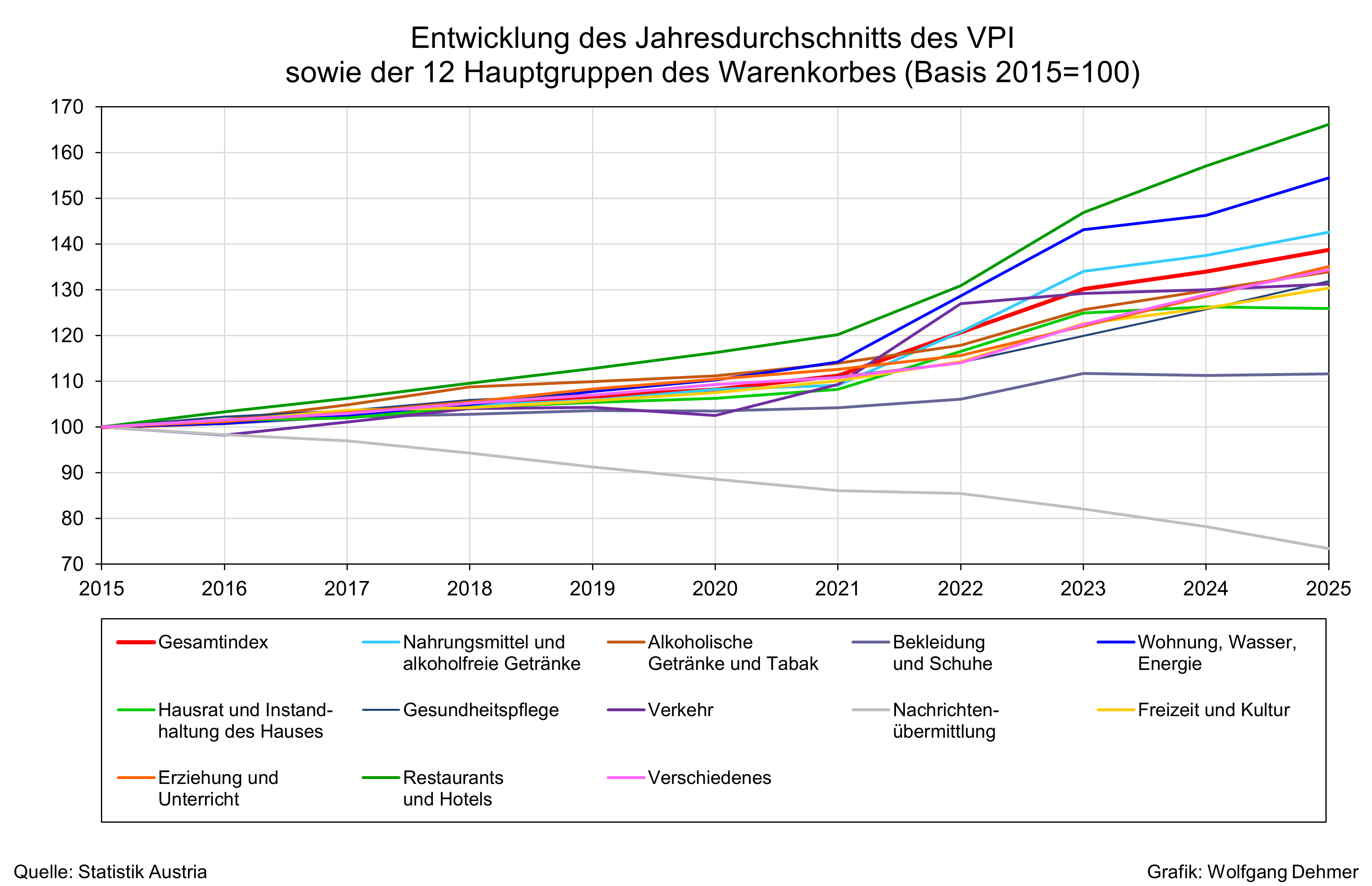 Grundlage für den VPI bzw. HVPI ist eine repräsentative Auswahl von Waren und Dienstleistungen (Warenkorb), die ein durchschnittlicher Haushalt in Österreich kauft.